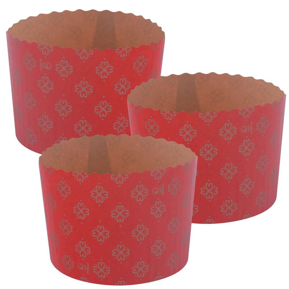 Форма для выпечки кулича бумажная "Пасхальная красная". Набор 3 шт. Диаметр 11см, высота 8,5см.
