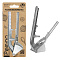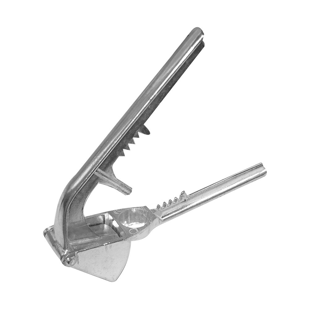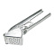Изделие устроено по принципу рычага – в чашу кладутся очищенные зубчики и придавливаются прессом. Тонкая кожица останется в чаше, а мякоть выходит через отверстия. Эта модель многофункциональна, поскольку оснащена орехоколкой и приспособлением для выдавливания косточек из вишни и черешни.