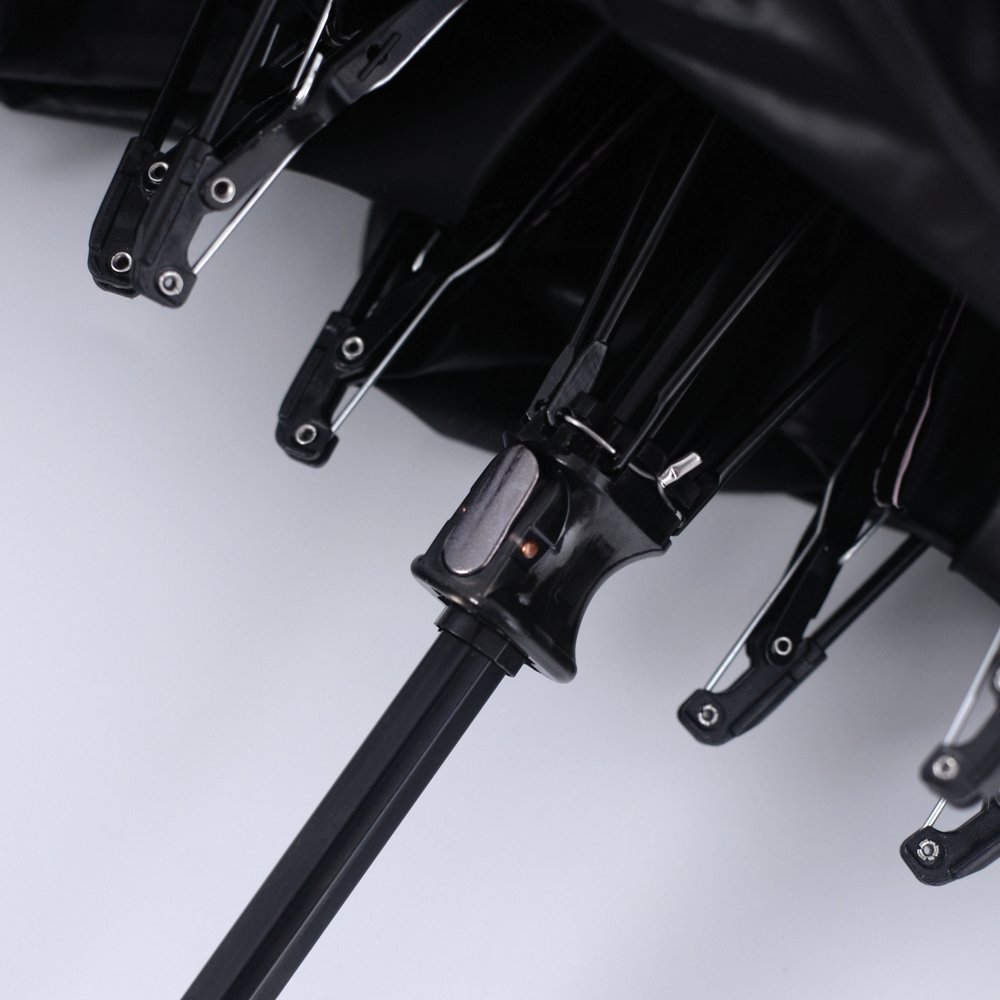 ВНИМАНИЕ! для открытия зонта доведите бегунок до щелчка (не нажимая на кнопку). Для закрытия зонта нажмите кнопку на бегунке и потяните его вниз. Сверните зонт и зафиксируйте его при помощи застежки на липучке.